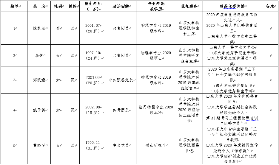 根据学校关于召开共青团山东大学第十七次代表大会的相关通知要求,经自主报名、年级/团支部推举、学院团委审核、学院党委及学校团委审核,确定共青团山东大学第十七次代表大会安博官方网页版代表候选人推荐人选名单如下,特此公示:
