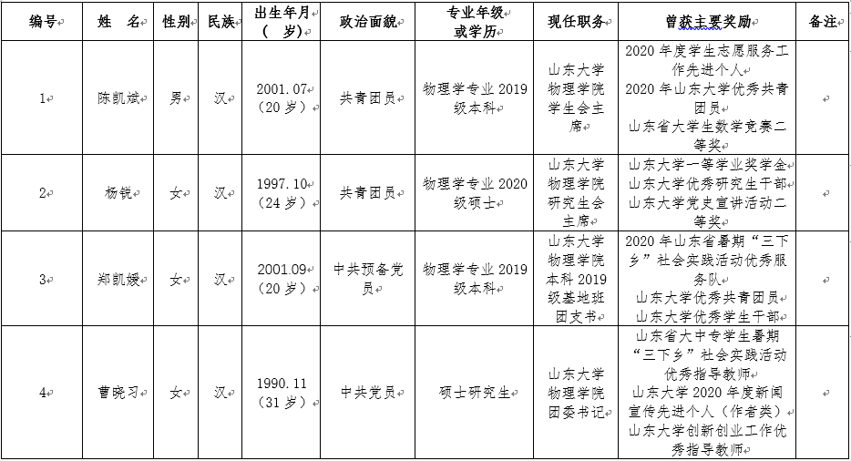 根据学校关于召开共青团山东大学第十七次代表大会的相关通知要求,经自主报名、年级/团支部推举、学院团委审核、学院党委及学校团委审核、学院团代会投票,确定共青团山东大学第十七次代表大会安博官方网页版代表名单如下,特此公示(代表名单以姓氏笔画为序排列):公示时间:2021年12月10日——12月16日监督电话:88369720监督邮箱:sduwulitw@163.com共青团山东大学安博官方网页版委员会2021年12月10