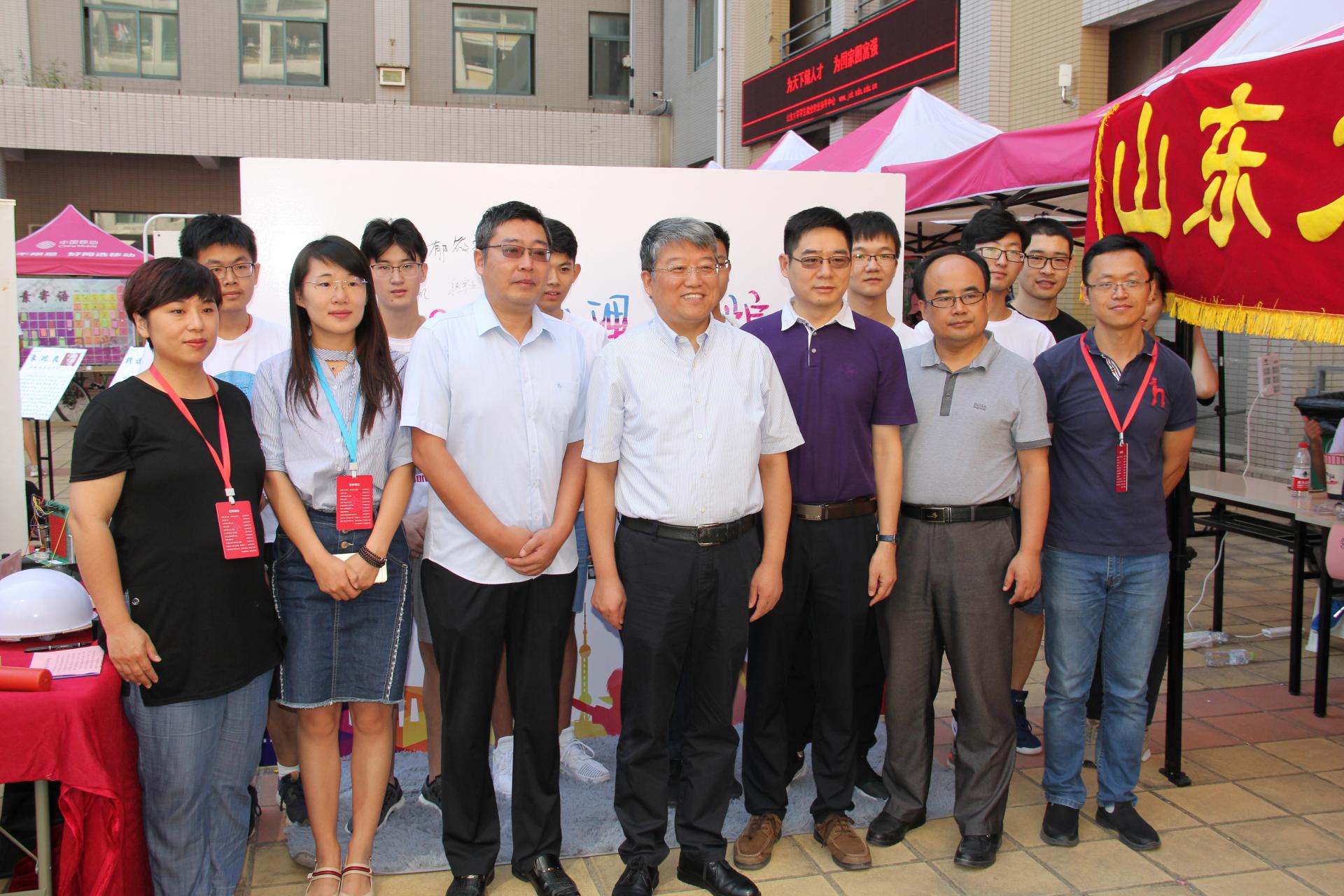 8日七时许,场地搭建完毕,迎新工作正式开始。学生会全体成员及招募的四十余名志愿者承担了现场的主要任务,工作流程清晰明了,快捷便利。经由现场宣传品的展示,新生及家长对于学院情况有了大致的了解。现场师生也热情为新同学答疑解惑,提供意见。手续办理完成后,报到新生与家长合影留念。报到新生踌躇满志,准备迎接即将到来的大学生活;而家长的眼神中也时刻流露出对新生的慈爱与不舍。除此之外,许多现大四年级(2015级)的同学也积极前来协助,将自己的祝福给予“年轻一代”。迎新工作开展期间,山东大学党委书记郭新立前来视察,并与安博官方网页版负责老师合影留念。