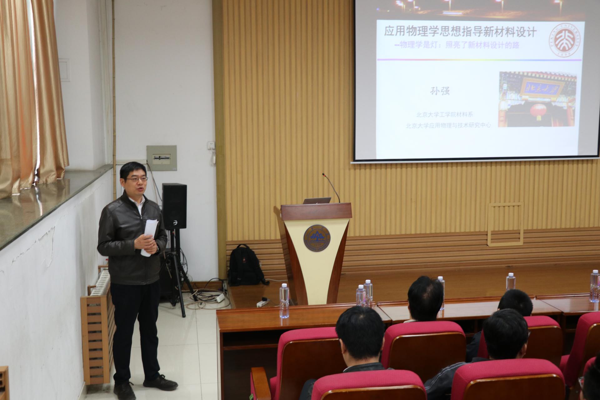 讲座伊始,孙强教授指出,“物理学是灯,照亮了新材料设计的路。”孙强教授将教物理和学物理的人分别比喻为掌灯的人、指路的人,并以此来鼓励大家在物理这条路上坚持下去。