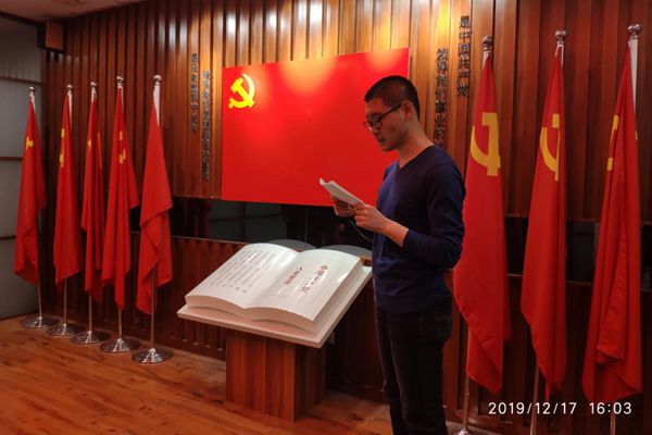 12月17日,安博官方网页版2019年学生党员入党宣誓仪式在知新楼C座二楼党员活动室举行。学院组织员于新好出席本次仪式。仪式由学院本科生党支部书记高世杰主持,2019级博士生党支部书记张彬担任领誓人。