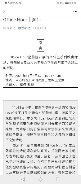 理论学习。组织学院全体学生骨干深入学习贯彻习近平总书记系列重要讲话精神和党的十九届五中全会精神;全力推进党员“三会一课”、主题党日学习,团员“青年大学习”、主题团日活动、团校培训;开展一校三地物理学科“追忆先辈治学史,共襄百廿山大梦”线上线下主题教育活动。做好学院学生骨干的思想教育、价值引领,强化物院青年学生的理论武装。