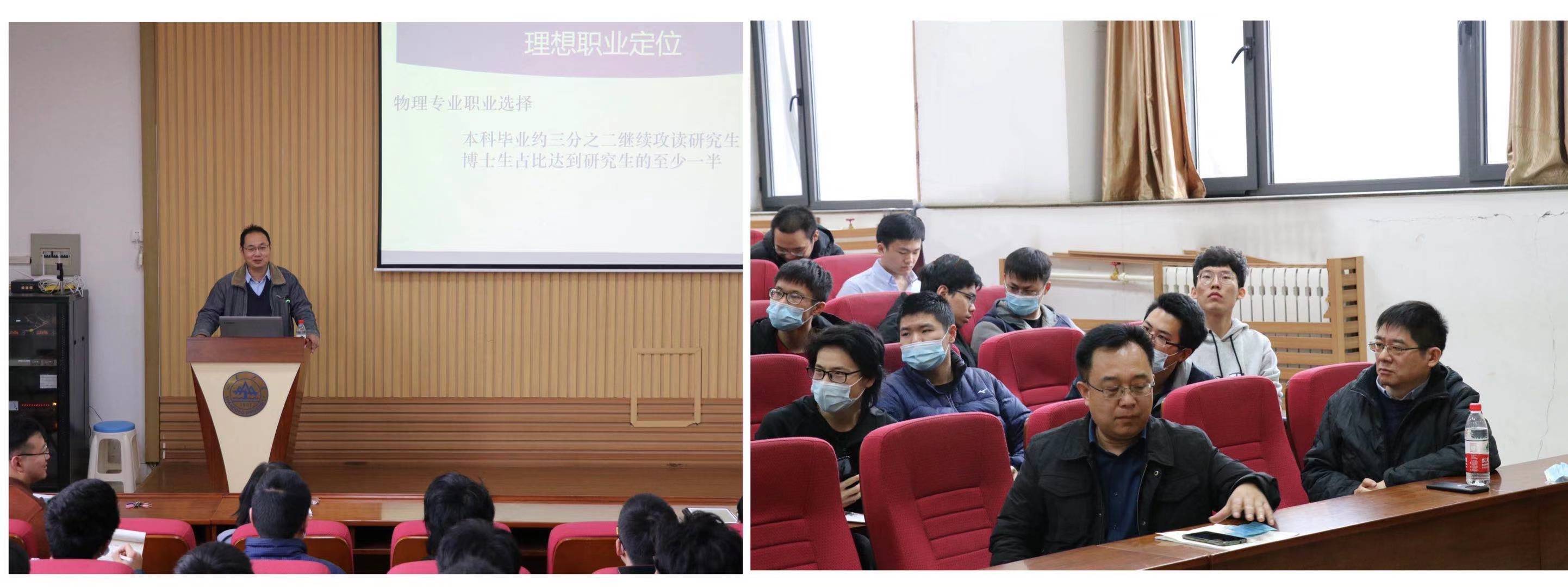 陈峰从物理专业的学科定位出发,就理想职业方向、研究生培养计划、科研实力比较、其他问题交流四个方面,通过与国内兄弟院校的横向对比分析了安博官方网页版在研究生培养方面的优势,如专业熟悉度高、导师选择面大、职涯对接契合度高等,展现了学院在学生培养中以学生发展为中心的理念。陈峰建议同学们要有大局观念,将目光放长远,做好未来规划,联系自身实际进行未来去向、升学专业及导师选择,慎重思索,正确决策,避免走不必要的弯路,踩不必要的坑。随后,陈峰、司宗国、赵明文围绕同学们关心的学校保研政策、考研形势、出国留学等问题进行了讲解,并对同学们提出的“内卷白热化形势下的2021考研”“物理学专业的出国留学该何去何从”“如何更好地实现本科、研究生阶段学习科研的无缝衔接”“保送或考取本校研究生有哪些优势”等问题予以耐心细致的解答。司宗国谈到,基于本科阶段的学习,学院老师与同学们之间有着比较清晰深入的认识,选择保送或考取本院研究生更容易提早选择到合适的导师与课题组,进行研究生阶段的持续学习。赵明文分析了近几年学院研究生的录取、培养情况,详细介绍了学校与学院针对硕博学生设置的多项奖学金,激励同学们要抓住一切机会不断提升个人学术、科研水平。现场气氛热烈,同学们受益匪浅。