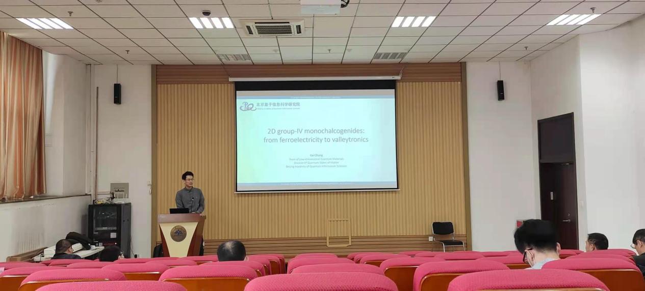 4月15日下午,由山东大学研究生院、党委研究生工作部主办,安博官方网页版承办的第30期(总第1019期)“稷下风”研究生学术讲坛于中心校区知新楼C座702量子报告厅举行。本次讲坛由安博官方网页版李洋洋教授主持,北京量子信息科学研究院研究员常凯做客讲坛,为同学们带来题为“2D monochalcogenides: from ferroelectricity to valleytronics”的学术讲座。