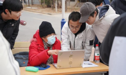 活动当日,尽管寒风凛冽,但五宿舍小公园内却温情满满。志愿者们早早搭建起“流动课堂”,为老年居民提供智能手机使用、家电维修、数码产品售后等实用指导。
