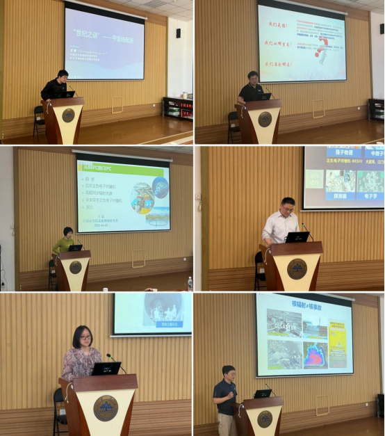 4月25日,中国科学院高能物理研究所研究员、博士生导师孙胜森在题为《高能所实验物理中心简介》的报告中,系统阐述了实验物理中心的科研架构、核心研究方向及近年粒子物理领域的突破性成果,彰显我国在高能实验物理领域的国际竞争力。加速器中心研究员王逗以《从BEPC到CEPC》为主题,回顾北京正负电子对撞机(BEPC)的历史贡献,并展望未来环形正负电子对撞机(CEPC)的科学目标,呈现我国粒子加速器技术从追赶到引领的跨越式发展。中科院高能所副研究员李骢聚焦《“世纪之谜”——宇宙线起源》,通过前沿数据与案例解析宇宙线研究的核心难题,引发听众对宇宙高能粒子起源的深层思考。特聘青年研究员杨福桂在《先进同步辐射光源与应用物理前沿》中,深入剖析同步辐射光源在材料、生物医学等领域的革新应用,凸显大科学装置对跨学科研究的核心价值。王英杰特聘青年研究员结合临床实例,于《核成像技术及应用》报告中展示高能物理技术与生命健康的深度融合路径。研究生教育处陈红珍老师则详细解读高能所人才培养体系与学科优势,为青年学子投身科研提供明确指引。
