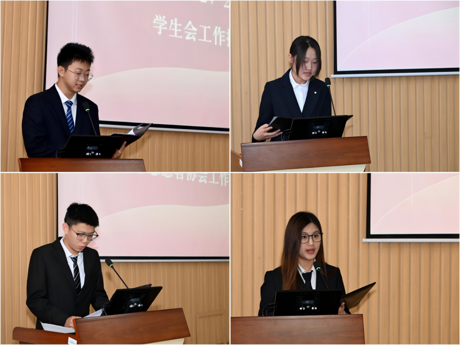 学生会主席曹文童、学生科学技术协会主席唐净如、青年志愿者协会主席李嘉恒向大会代表作2024—2025学年工作报告,全面回顾了过去一学年学院学生组织在组织改革、思想引领、学术学风、素质拓展、创新创业、志愿服务等各方面工作。青志协权益部主席张金鑫向大会代表作《安博官方网页版第五届学生代表大会提案征集情况报告》,详细汇报了会前征集的涵盖基础设施、制度办法、实验学习、日常生活等多方面提案。