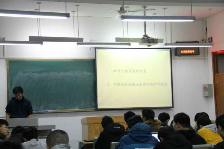 首先,赵博宇同学先向同学们介绍了十九大会议的流程及主题内容,带领同学们回顾了党过去五年的工作和历史性变革,并与同学们探讨了我国现在仍存在的问题,在学习中,同学们发现了一条始终贯穿党的十九大报告的主线——中国特色社会主义入进入了新时代,于是接下来团支书为同学们详细介绍了这个新时代。接着,他着重强调了习近平总书记在报告中提到的一句话:“青年兴则国家兴,青年强则国家强。青年一代有理想、有本领、有担当,国家就有前途,民族就有希望。”来勉励同学们。最后,同学们一同观看了影片《建军大业》。