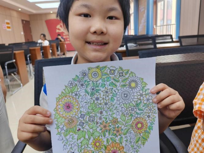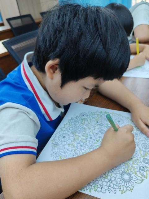 在最后的手工课上,在冉茂蕾老师简单介绍了关于美术色彩运用的一些知识后,同学们开始自主涂色,发挥自己的想象力,最后他们展示了自己的成果。